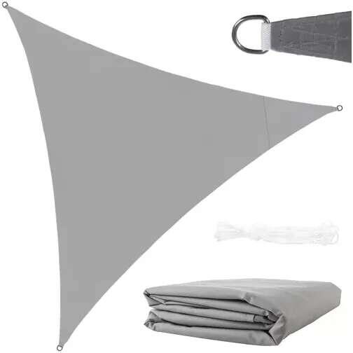Háromszög Napvitorla 3x3x3m - Tökéletes árnyék a forró napokra ☀️ Ez a 3x3x3 méteres, elegáns szürke háromszög napvitorla ideális megoldás a kertbe, teraszra vagy akár kempingezéshez is. Kiváló minőségű, tartós poliészter anyagból készült, UV30 bevonattal, amely megvédi Önt a káros napsugaraktól. A vízálló anyagnak köszönhetően nem kell aggódnia az eső miatt sem. ☔️ Főbb jellemzők:UV védelem: A nagy sűrűségű (180g/m2) anyag hatékonyan szűri a napsugarakat, kellemes hűvöset biztosítva a vitorla alatt. Vízálló: Az anyag vízlepergető, gyorsan szárad, így bármilyen időjárás esetén használható. Sokoldalú: A napvitorla tetszőleges szögben elhelyezhető, a kötelek és rögzítőgyűrűk segítségével könnyen rögzíthető. Tartós anyag: Poliészter + UV30 bevonat biztosítja a hosszú élettartamot. Könnyű szerelés: A csomag tartalmazza a szükséges köteleket a rögzítéshez. Műszaki adatok:Tulajdonság ÉrtékSzín SzürkeAnyag Poliészter + UV30 bevonatSűrűség 180g/m2Méret (fogantyúk) 3 x 3 x 3 mAnyagméret 230 cmSúly 0,542 kgSúly csomagolásban 0,57 kgA csomag tartalma: Napvitorla 4 db kötél Élvezze a kellemes árnyékot és a nyugalmat a kertjében ezzel a praktikus és stílusos napvitorlával!